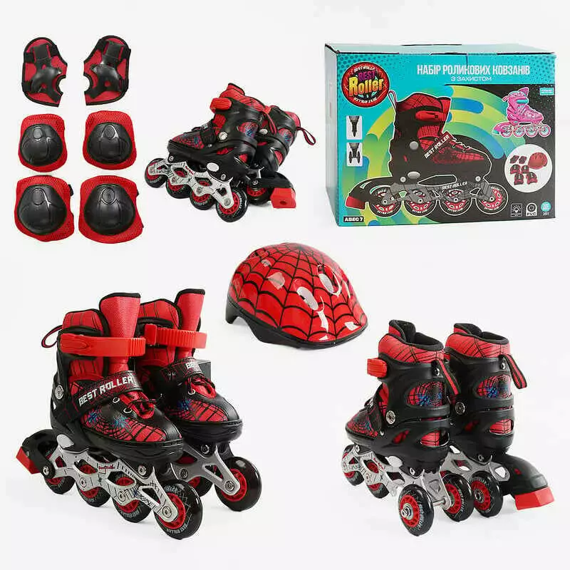 Ролики 12405-S розмір 28-31 (6) колеса PVC, устілка 17 - 19 см, ПЕРЕДНЄ КОЛЕСО СВІТЛО, d – 6.5 см, шолом - 21х17 см, захист, в коробці