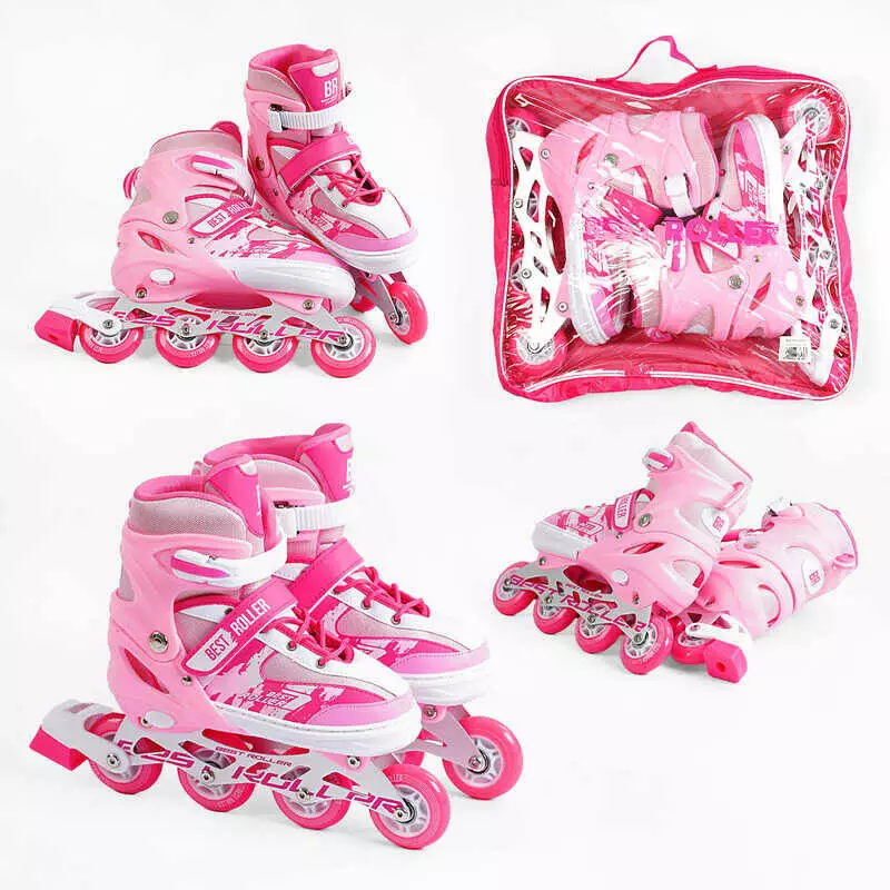 Ролики 62870-L Best Roller /розмір 38-42/ колір – РОЖЕВИЙ (6) колеса PU, ПЕРЕДНЄ КОЛЕСО СВІТЛО, устілка 24.5-26.5 см, d колес – 7 см, в сумці