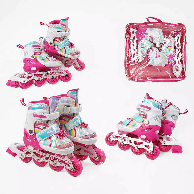Ролики 73426-S /розмір 29-33/ колір – ЧЕРВОНИЙ (6) колеса PVC, устілка 17-20 см, ПЕРЕДНЄ КОЛЕСО СВІТЛО, d – 6.5 см, в сумці