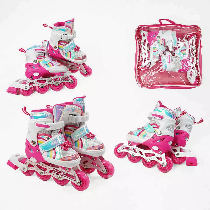 Ролики 75504-S розмір 31-34 (6) колір РОЖЕВИЙ, устілка 18-20 см, колеса PU, d коліс – 6 см, підсвічування коліс, в сумці