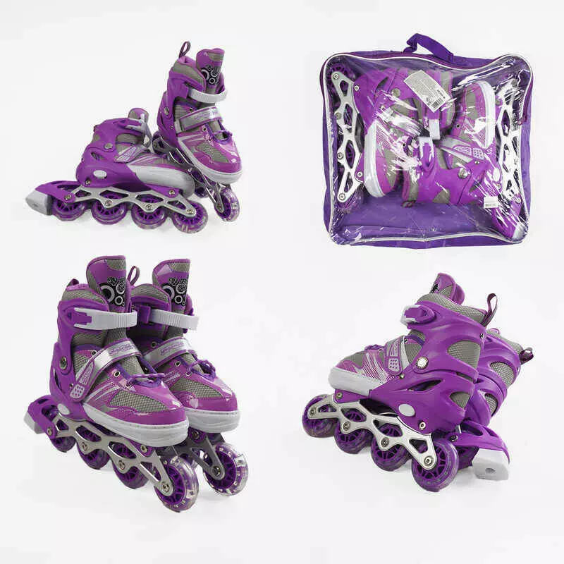Ролики 88369-М /розмір 34-38/ колір – ФІОЛЕТОВИЙ (6) колеса PVC, устілка 21-24 см, ПЕРЕДНЄ КОЛЕСО СВІТЛО, d – 6.5 см, в сумці