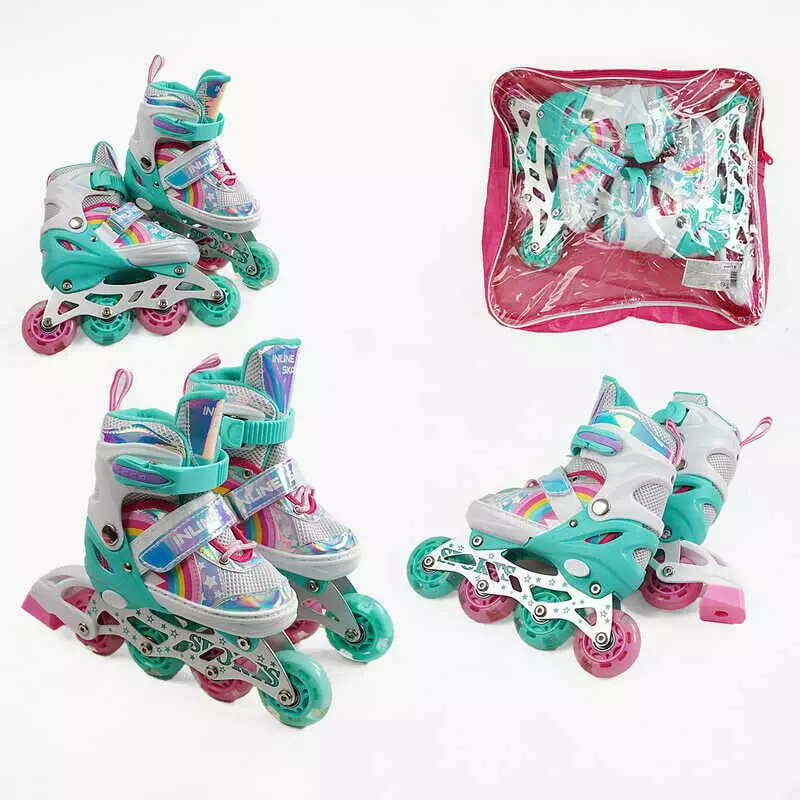 Ролики J-9730-6 S розмір 29-33 (6) колір Бірюзовий, устілка 18-21 см, колеса PU, d коліс – 6 см, підсвічування коліс, в сумці