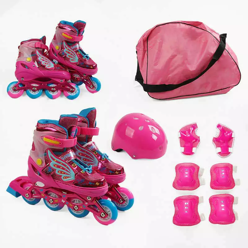 Ролики с захистом SC-45800 S розмір 31-34 (6) колір РОЖЕВИЙ, колеса PU, ПЕРЕДНЄ КОЛЕСО СВІТЛО, устілка 17-20 см, d коліс – 6 см, в сумці