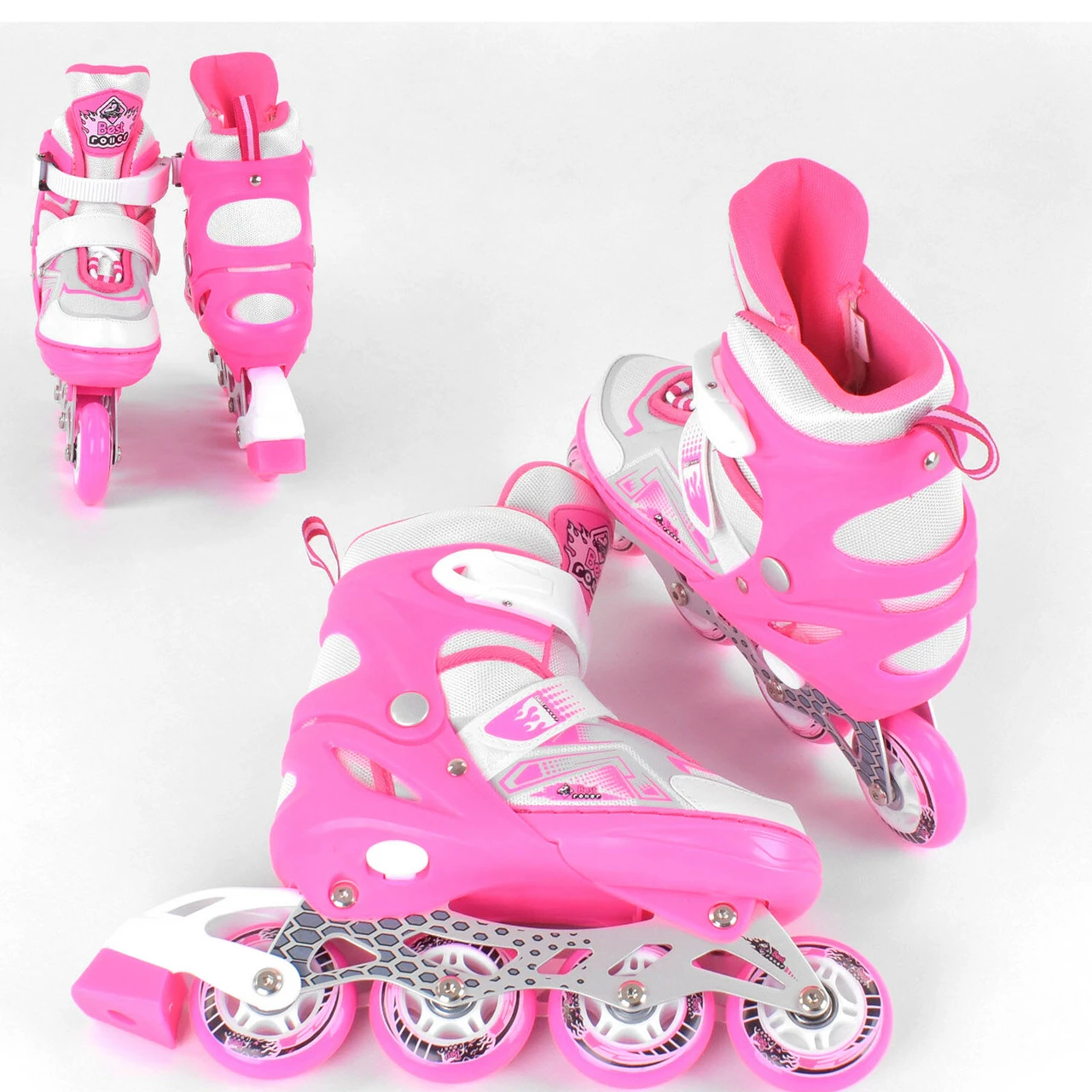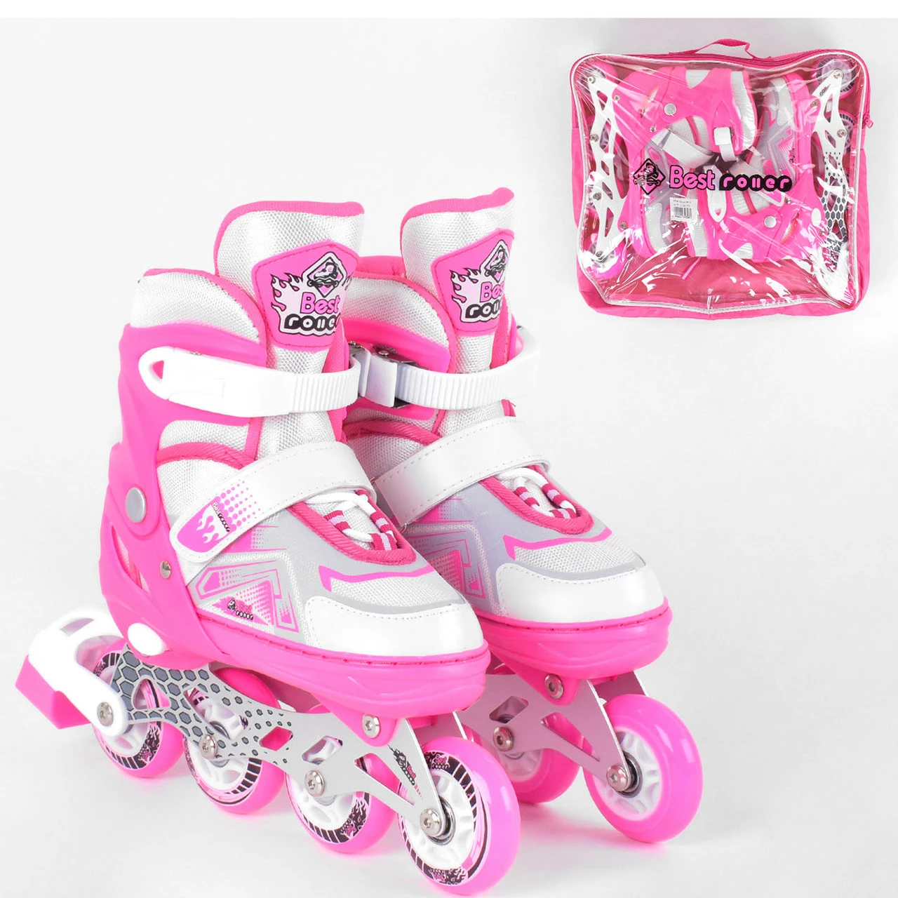 Стильные роликовые коньки с цветными колёсами, отличается своим