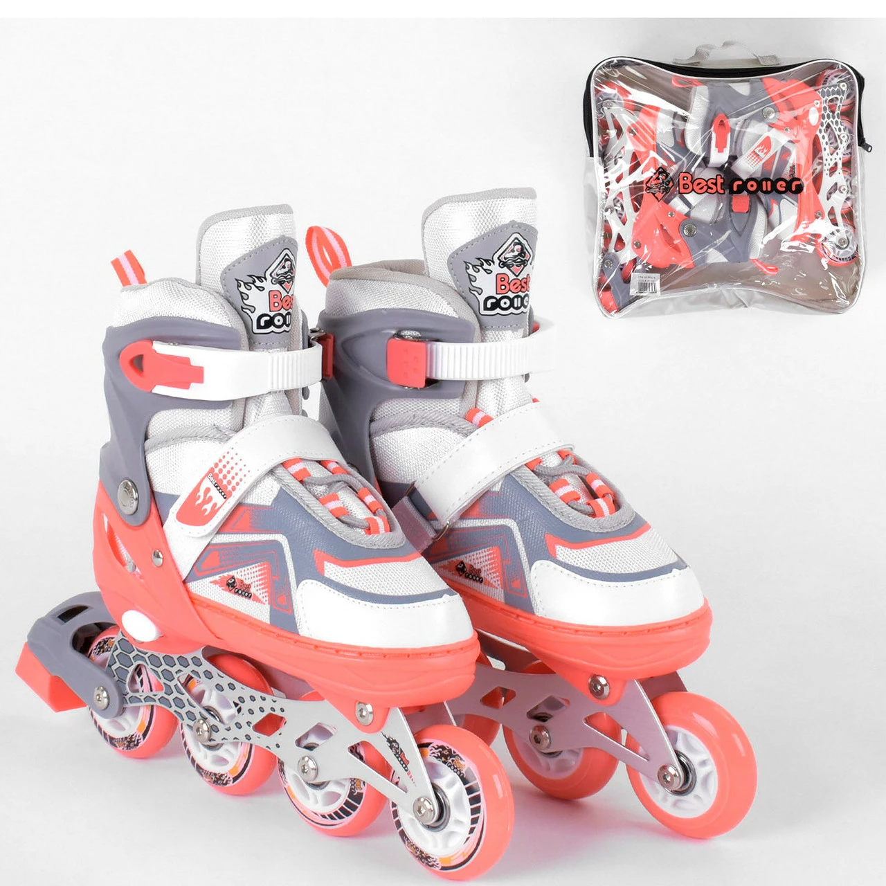Стильные роликовые коньки с цветными колёсами, отличается своим