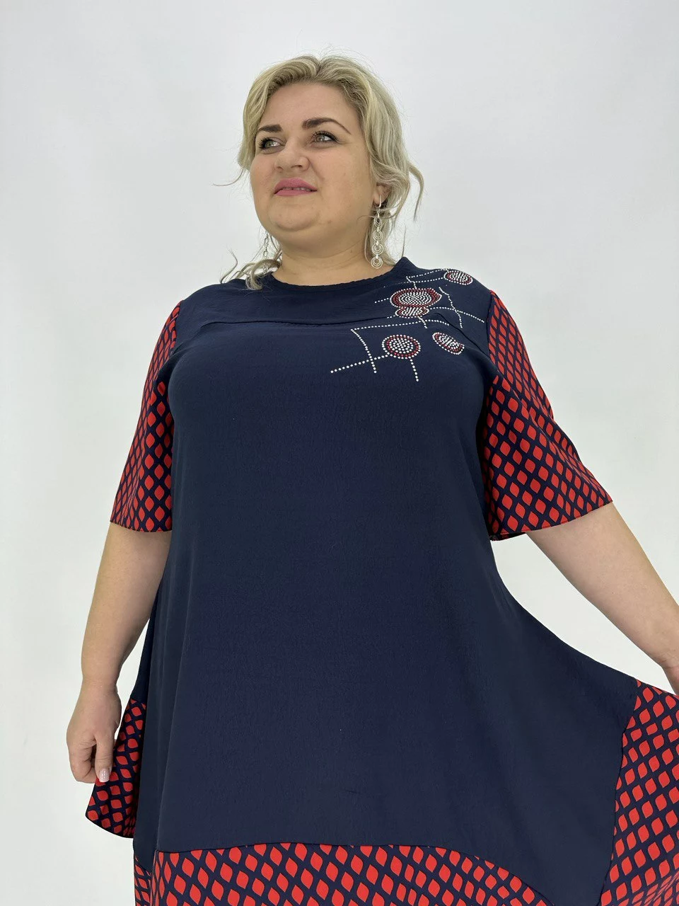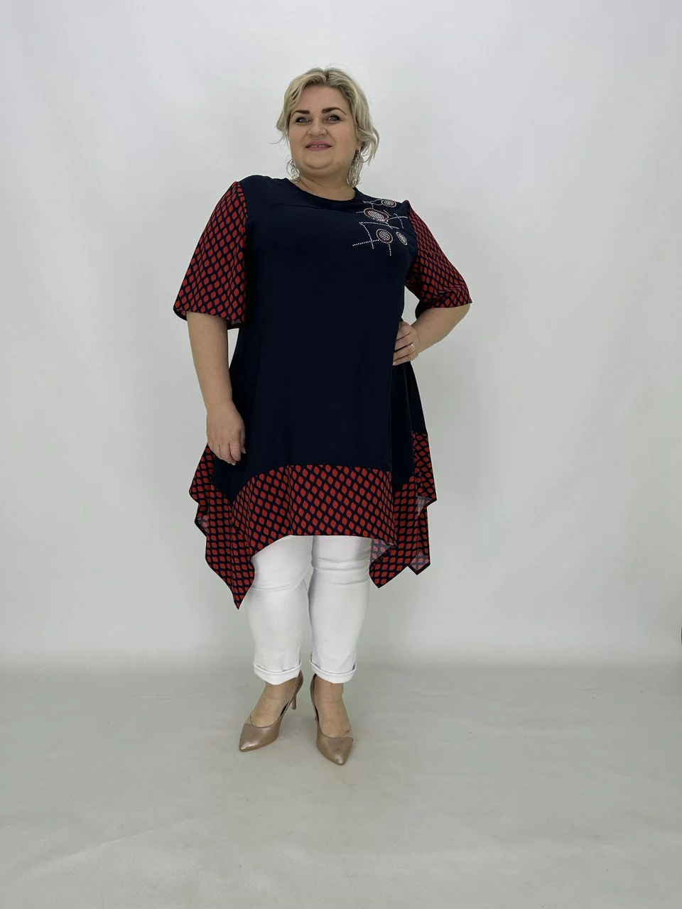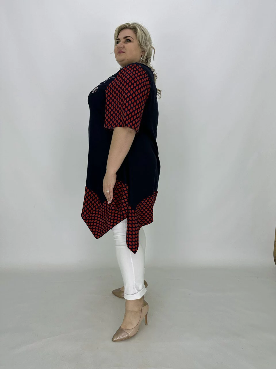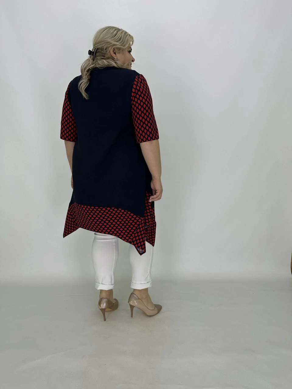 Розкльошена туніка з подовженими кутами.