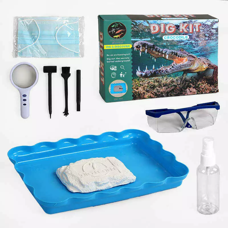 Розкопки WL 115 (36) “Рептилії”, таця, гіпсовий брикет, інструменти, захисні окуляри, маска, в коробці