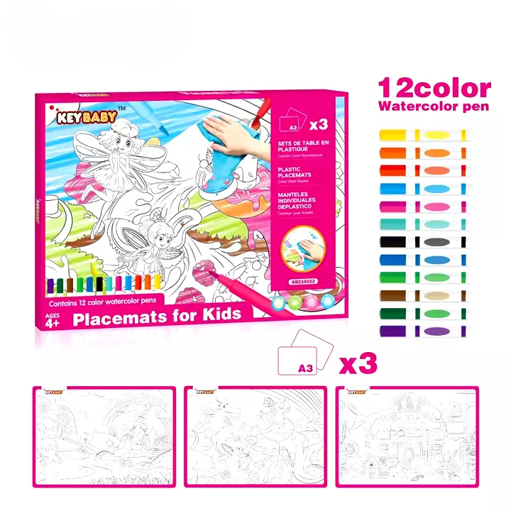 що містить три розмальовки, 12 маркерів, що стираються, і