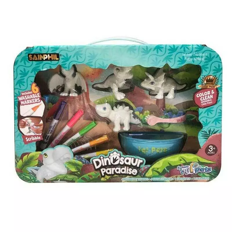 Розмальовка SP 8633 (24) 4 фігурки динозаврів, 6 маркерів, що змиваються, ванночка, щіточка, в коробці