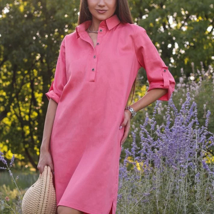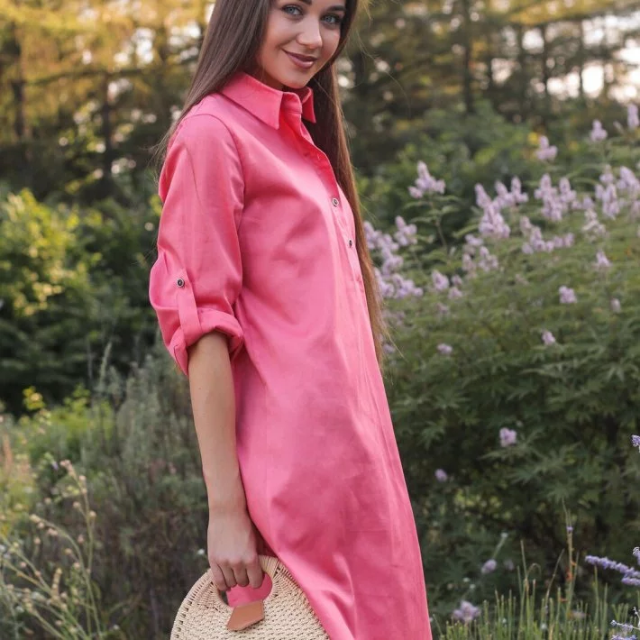 Сукня-сорочка прямого крою з натуральної бавовняної костюмної