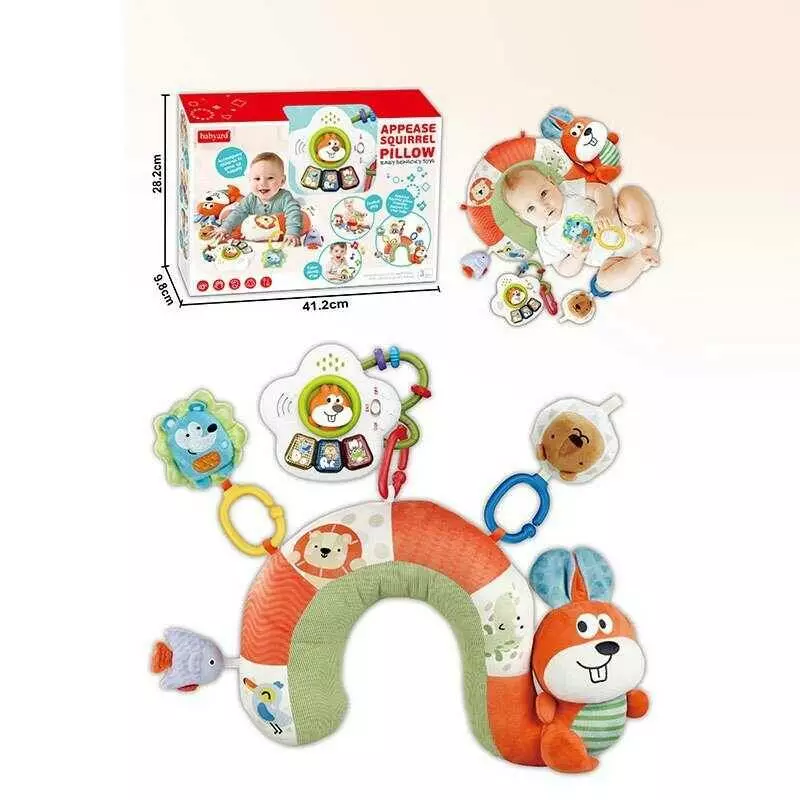 Розвивальна подушка BY 122 (12) "Білочка", підвіска-піаніно, 2 режими, мелодія, звуки нот і тварин, світло, пискавка, брязкальце, в коробці