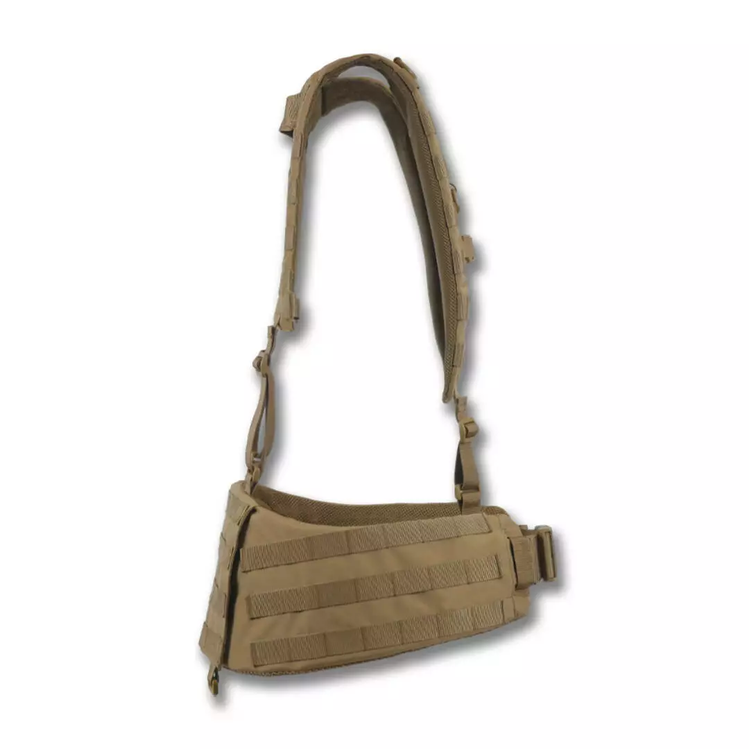 Конструкция. Плечевые лямки имеют рюкзачную конструкцию с ячейками MOLLE на спине для закрепления дополнительных итогов. Имеет внутренний слой полифома толщиной 5 мм и мягкую сетку для вентиляции. На лямках предусмотрено по 7 рядов MOLLE и нагрудный соединительный ремень на фастексе.