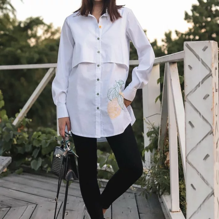 Сорочка-туніка подовженого прямого крою, повністю розстібається.