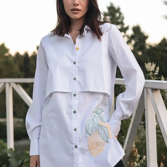 Декорована вишивкою "Лимони". Тканина при пранні не дає усадку. Ми