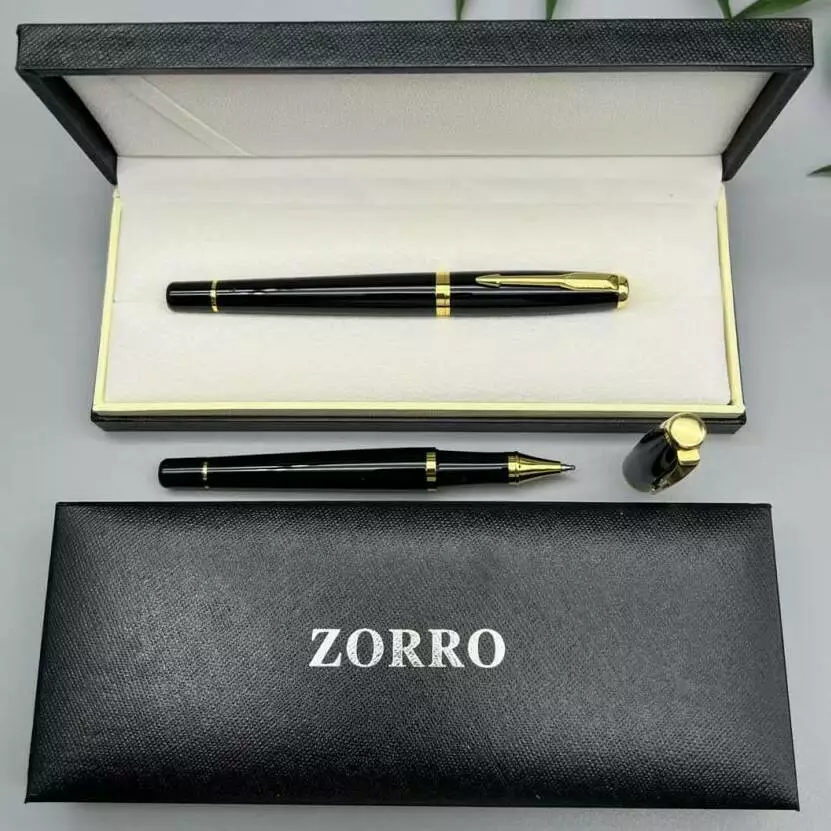Элегантная роллерная ручка ZORRO — это гармоничное сочетание классического стиля и практичности. Корпус выполнен в черном глянцевом цвете с золотистыми металлическими акцентами, которые подчеркивают изысканный дизайн. Упакована во фирменную подарочную коробку, такая ручка станет отличным деловым аксессуаром и солидным подарком.