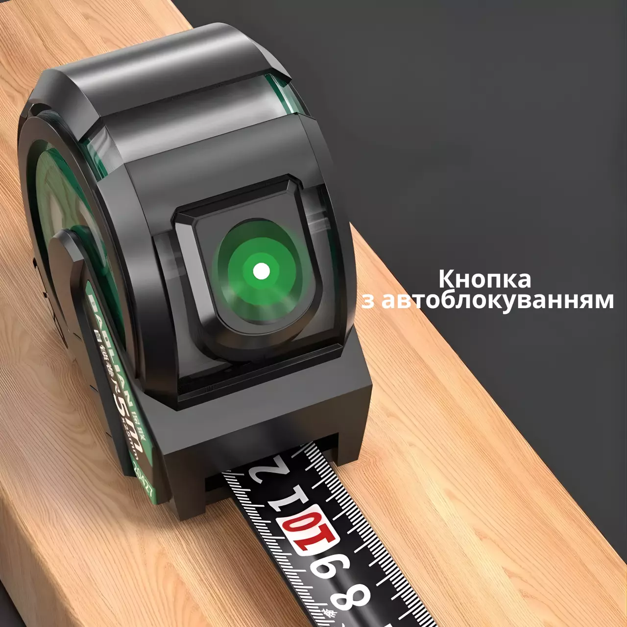 Рулетка оснащена автоматичним замком, який надійно фіксує стрічку в