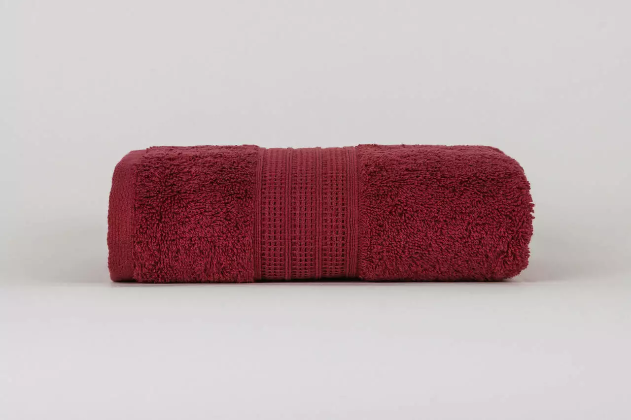 Махровий рушник однотонний CLASSIC з декоративним бордюром, колір марсала. Рушник виготовлено з 100% високоякісної бавовни. Край рушника з двох сторін прикрашений дизайнерським бордюром шириною 6см. Він не линяє, стійкий до стирання і прання. Ідеально підійде для SPA центрів, салонів краси, готелів, спортивних баз. Цей рушник є найкращим варіантом для подарунку Вашим близьким чи знайомим.