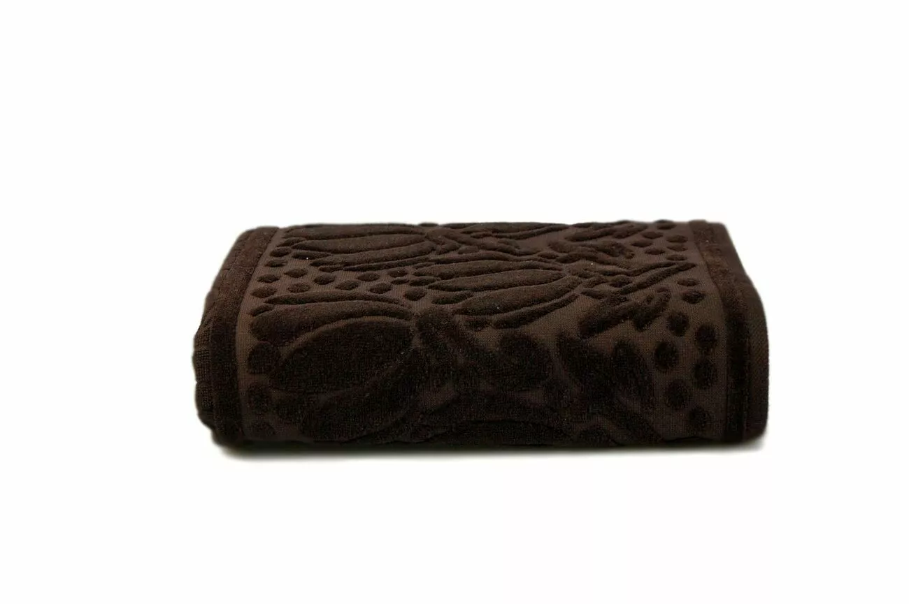 Махровий жакардовий рушник з рослинним малюнком та контрасним