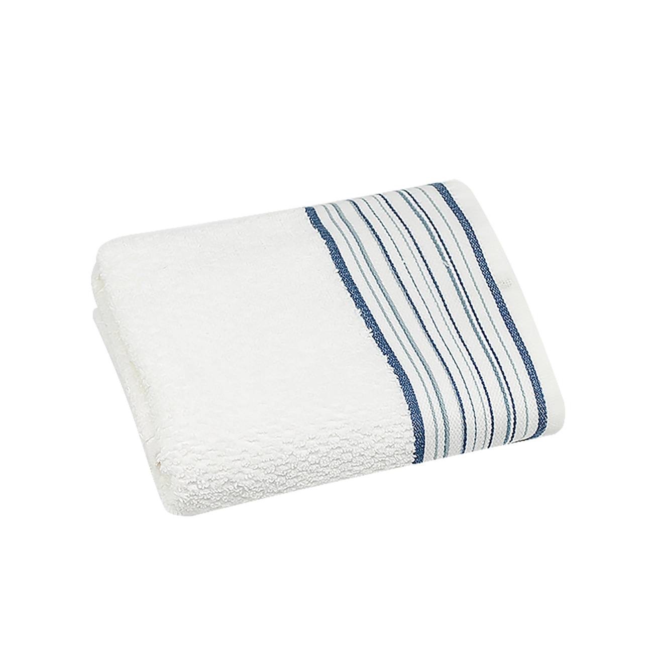 Білий махровий рушник з бордюром і легкою бахромою чудово доповнить