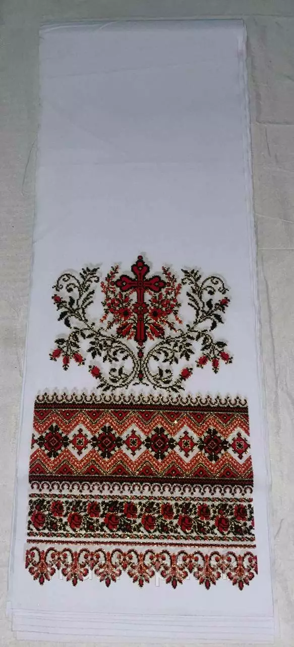Якісний друк.Золото.Тканина габардин.Колір червоний.Довжина 2м.