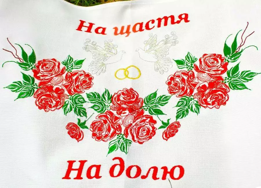 Весільний рушник "На щастя, на долю" часто використовується в українських обрядах.