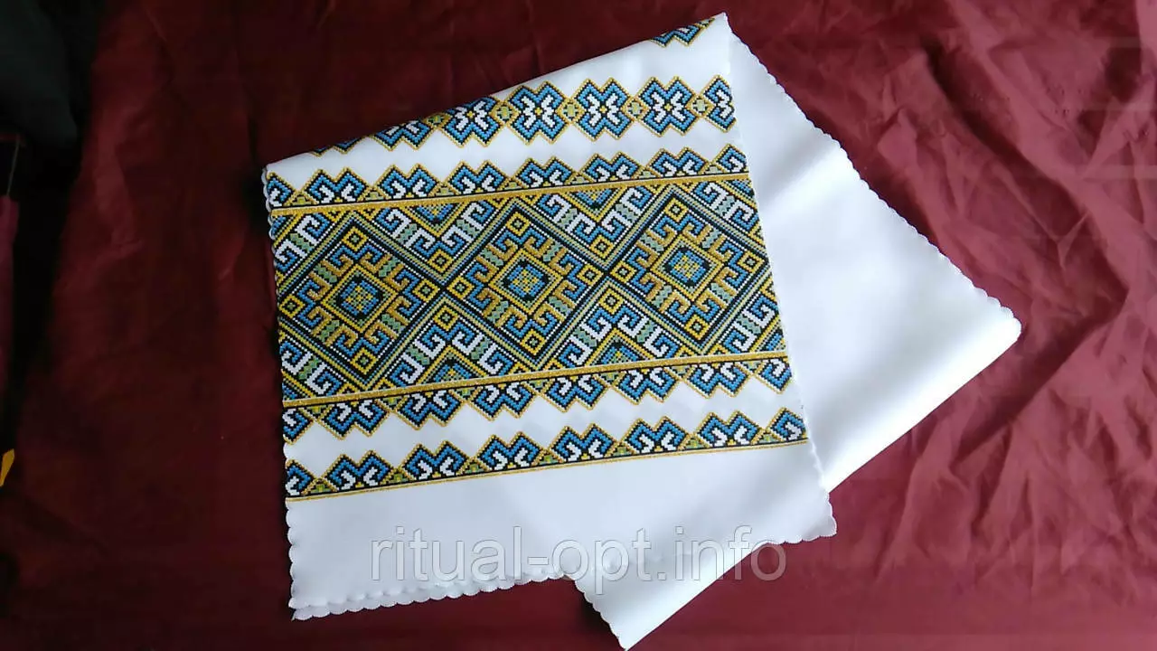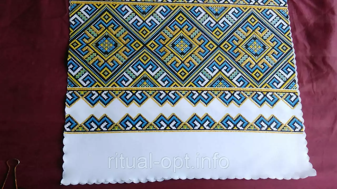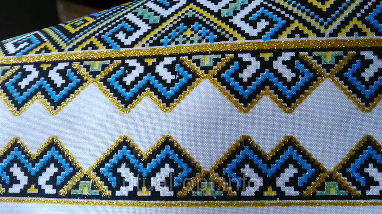 Матеріал: габардин.Розмір 160 на 35 сантиметрів.Повнокольоровий друк з глітером(золото).