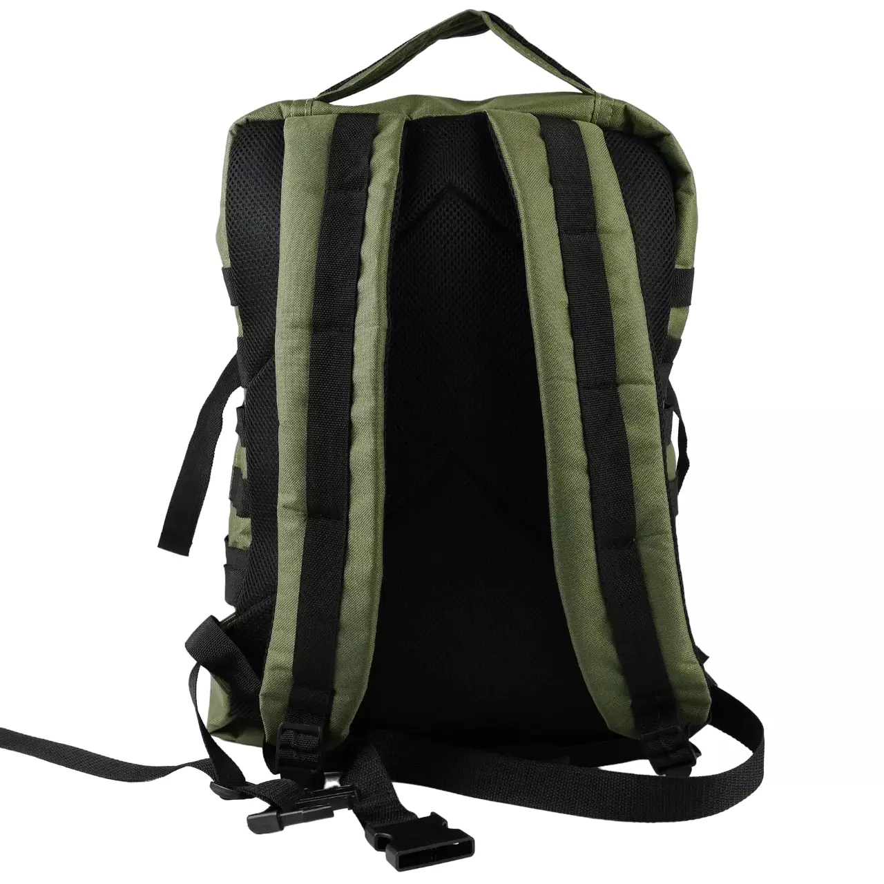Спереди и по бокам рюкзака пришиты лямки PALS, позволяющие крепить оборудование MOLLE.
