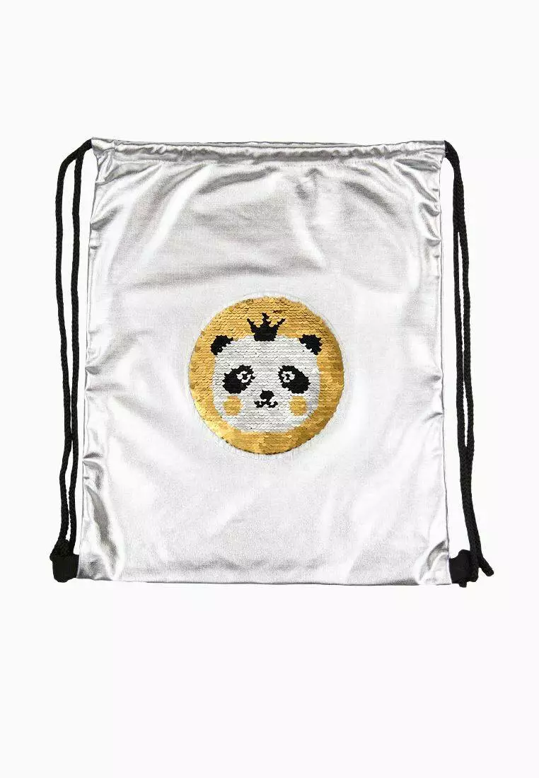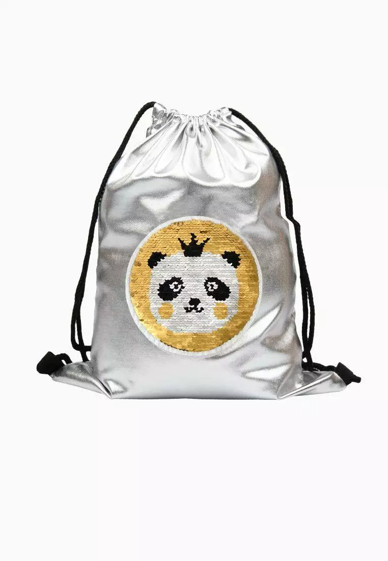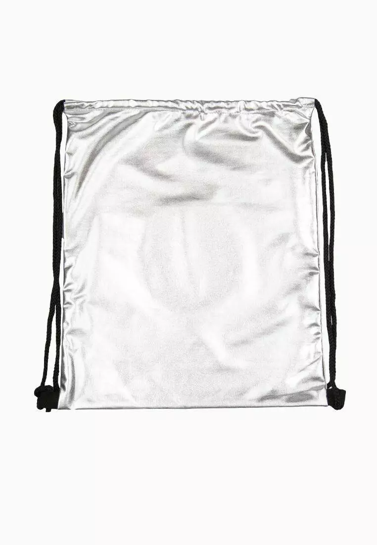 вмісткий рюкзак срібного кольору на шнурках. Підійде для дітей