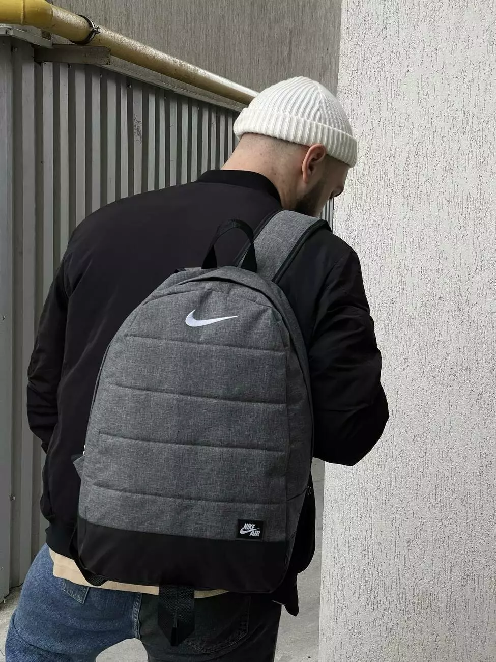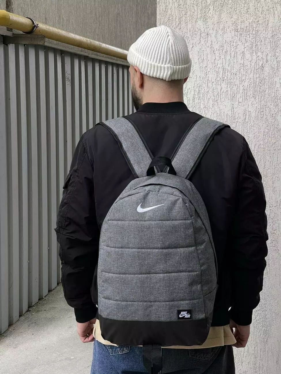 Рюкзак Матрас серый меланж Nike (белое лого)