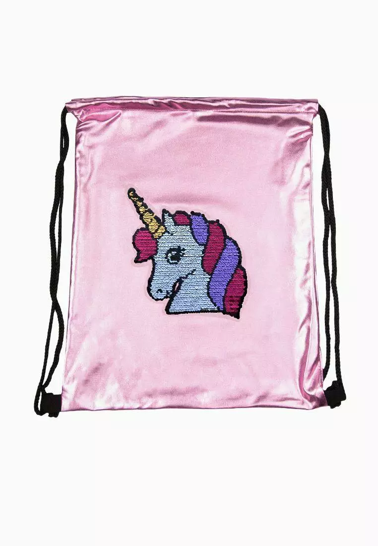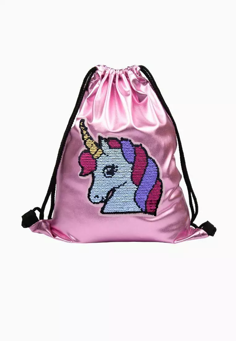 вмісткий рюкзак рожевого кольору на шнурках. Підійде для дітей