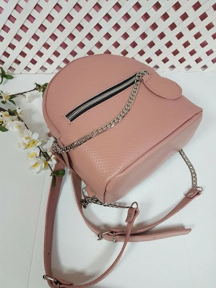 держит форму и очень вместительный.Цепочка придает рюкзачку