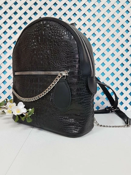 держит форму и очень вместительный.Цепочка придает рюкзачку
