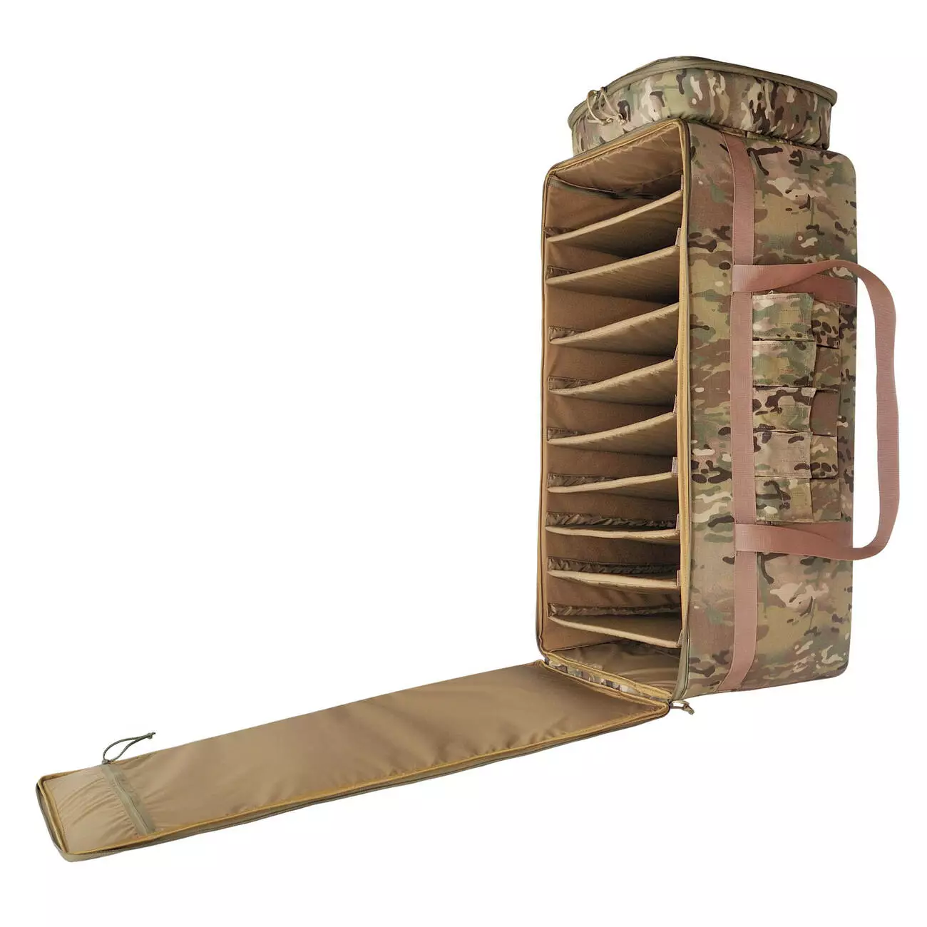 180° по типу валізи, має секції для дронів.