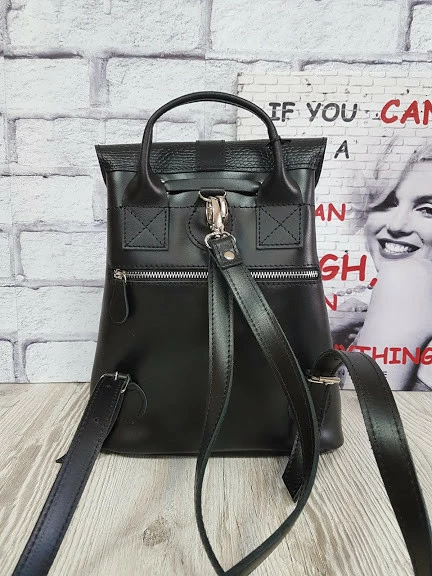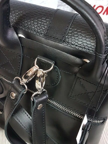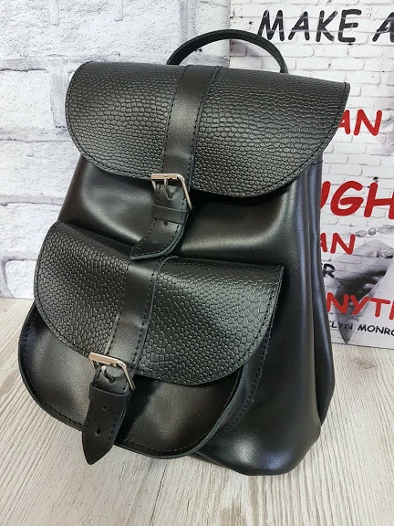 Рюкзак женский "ВОЯЖ" натуральная кожа, черный матовый с рептилией