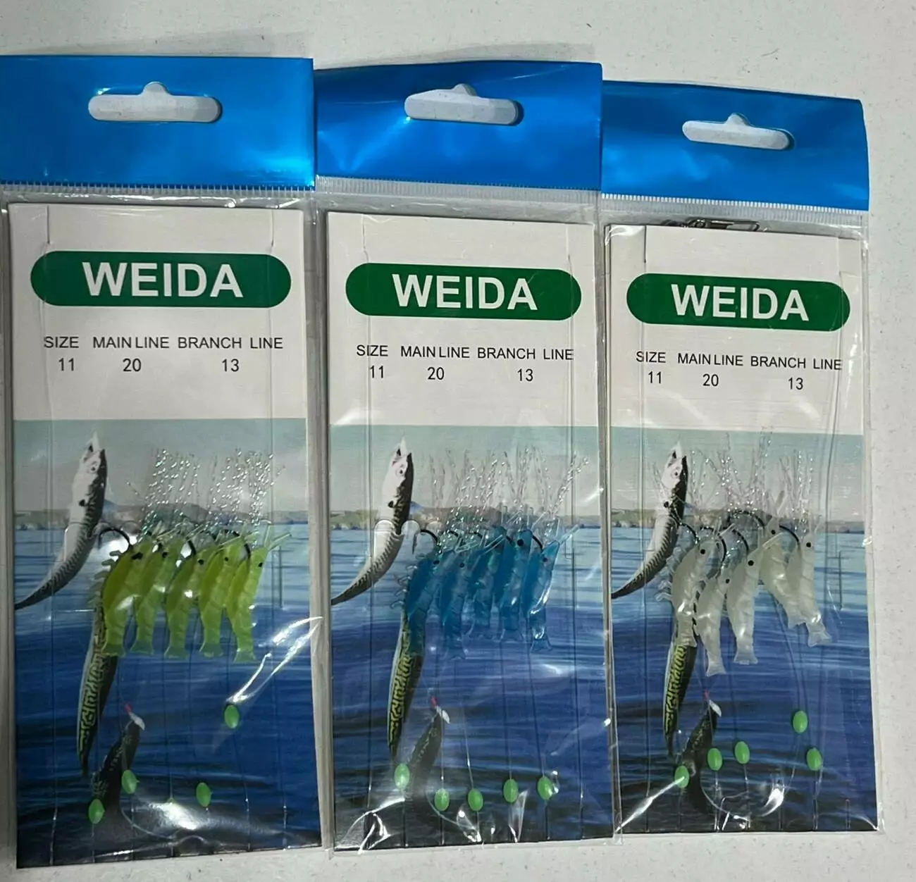 Сабіки WEIDA — готова риболовна оснастка з м’якими силіконовими приманками, призначена для ефективної ловлі дрібної та хижої риби. Оснастка забезпечує стабільну гру приманок і добре працює як у морській, так і в прісноводній воді. Яскраві та напівпрозорі кольори приваблюють рибу за різних умов ловлі.