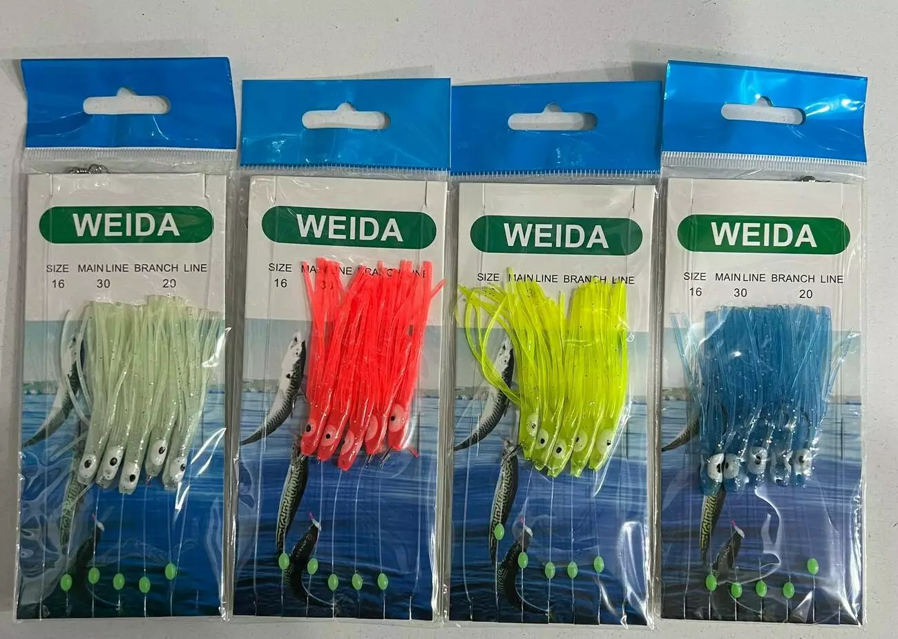 Сабіки WEIDA — готова риболовна оснастка з яскравими силіконовими приманками, призначена для ловлі дрібної та пелагічної риби. Ефективно працює як у морській, так і в прісноводній риболовлі. Яскраві кольори приваблюють рибу навіть за слабкої активності.