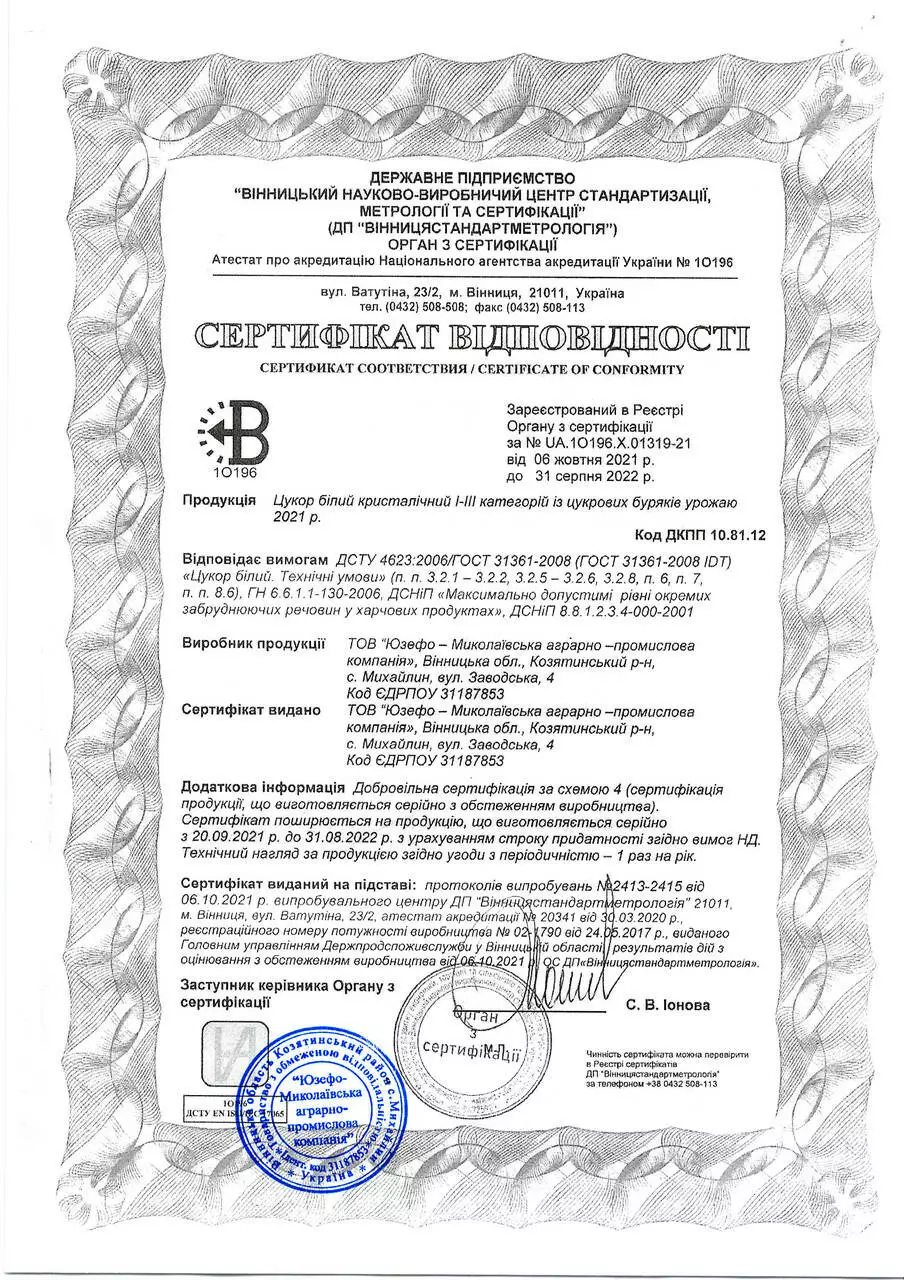 Сахар белый кристаллический третьей категории из сахарной свеклы,