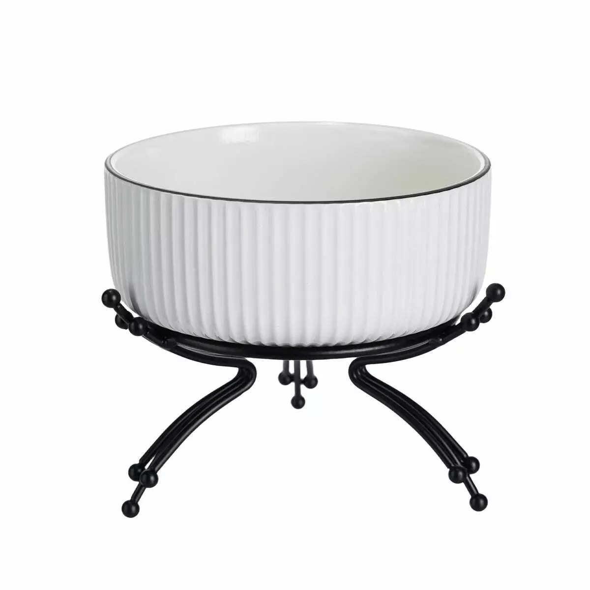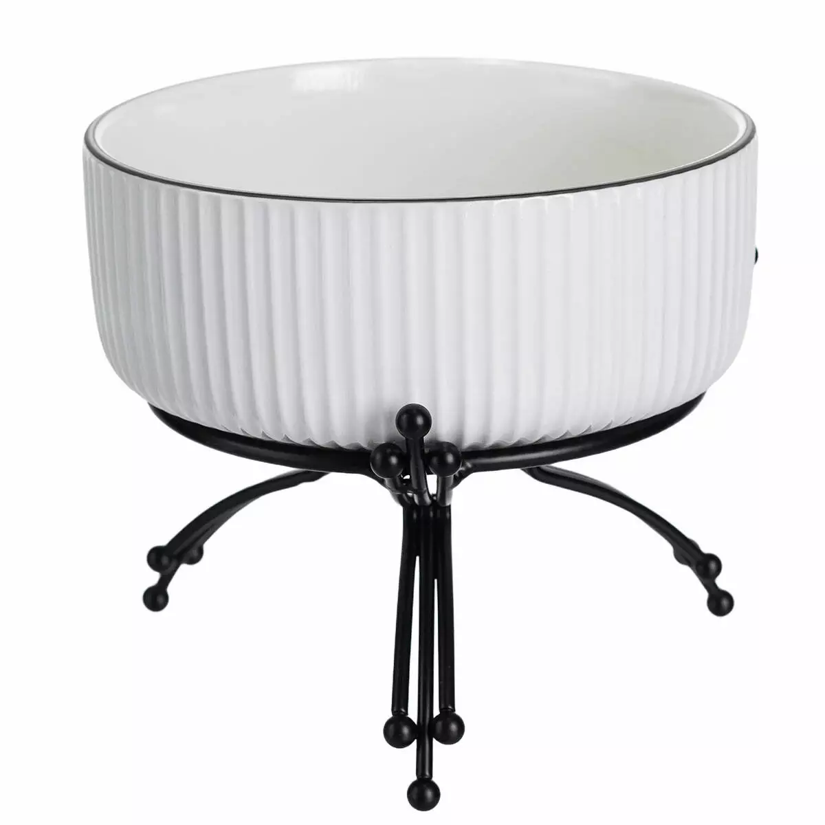 Металева підставка додає стійкості й дозволяє надійно утримувати салатницю на столі. Висота конструкції разом із підставкою становить 14 см, а загальна вага — 900 г, що робить виріб міцним і стабільним під час експлуатації. Такий формат доречний для домашнього використання, кафе або фуршетного сервірування.