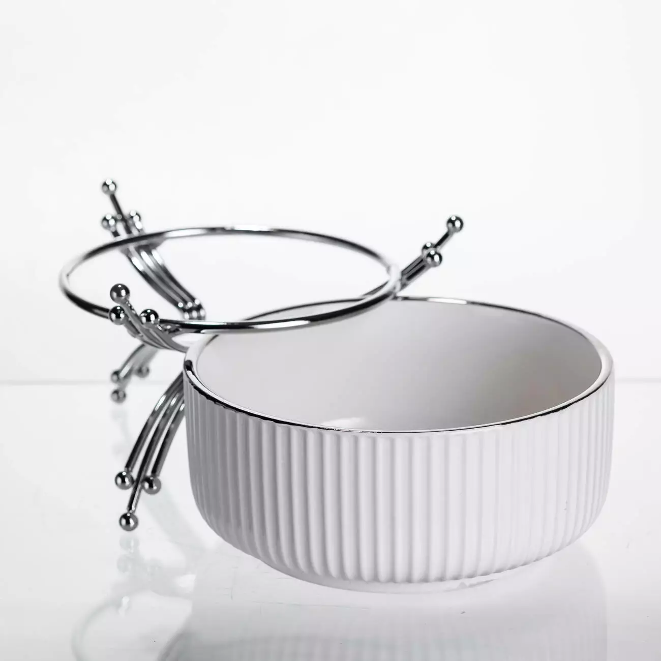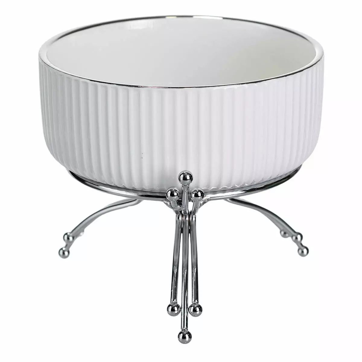 Салатниця порцелянова на металевій підставці 16 см, сріблястий