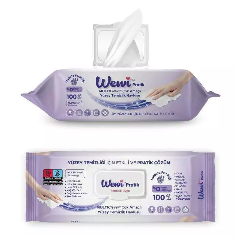 Салфетки влажные для уборки WEWI фиолетовые 100шт (Лаванда), 12шт/уп (1000088/1)
