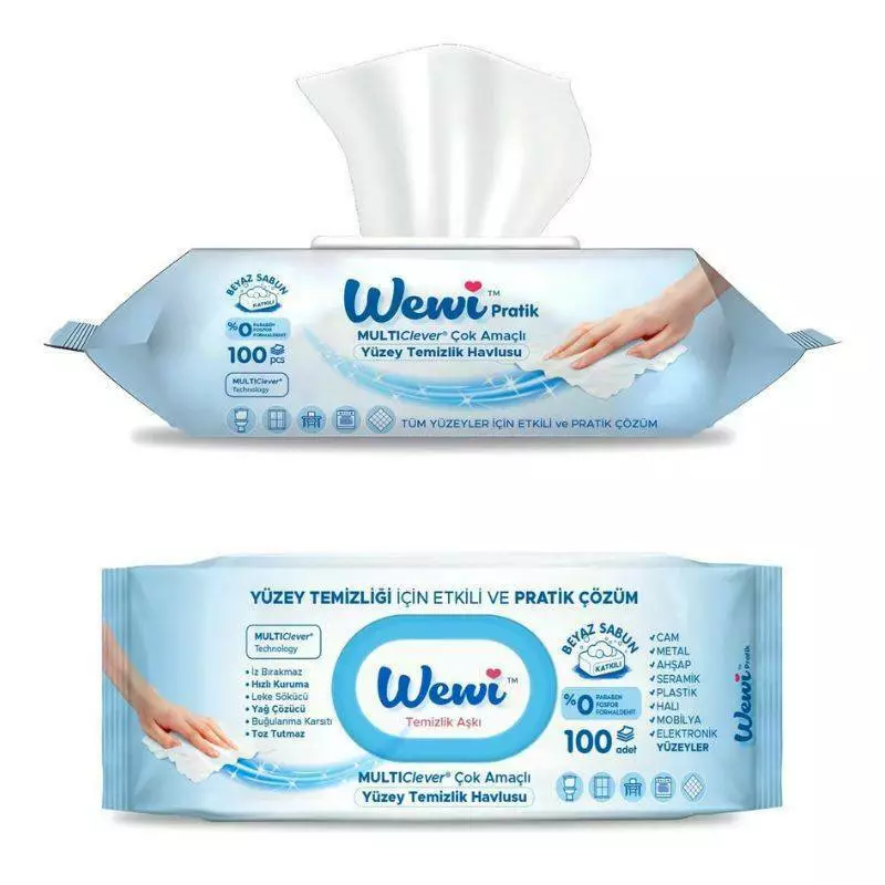 Салфетки влажные для уборки WEWI голубые 100шт (Белое мыло), 12шт/уп (1000088/3)