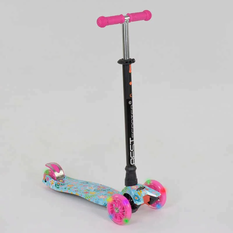 Самокат А 25533 / 779-1331 MAXI ""Best Scooter"" (1) пластмасовий, 4 колеса PU, СВІТЛО, трубка керма алюмінієва, d = 12см, в коробці