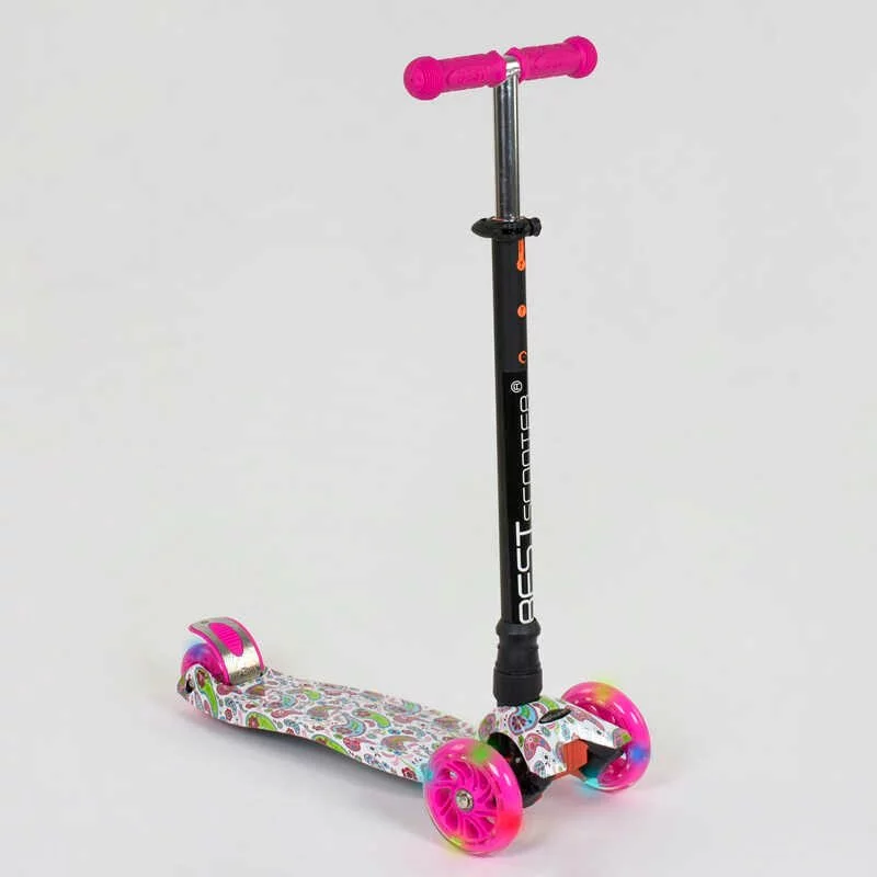 Самокат А 25598 /779-1341 MAXI ""Best Scooter"" (1) пластмасовий, 4 колеса PU, СВІТЛО, трубка керма алюмінієва, d = 12 см, в коробці