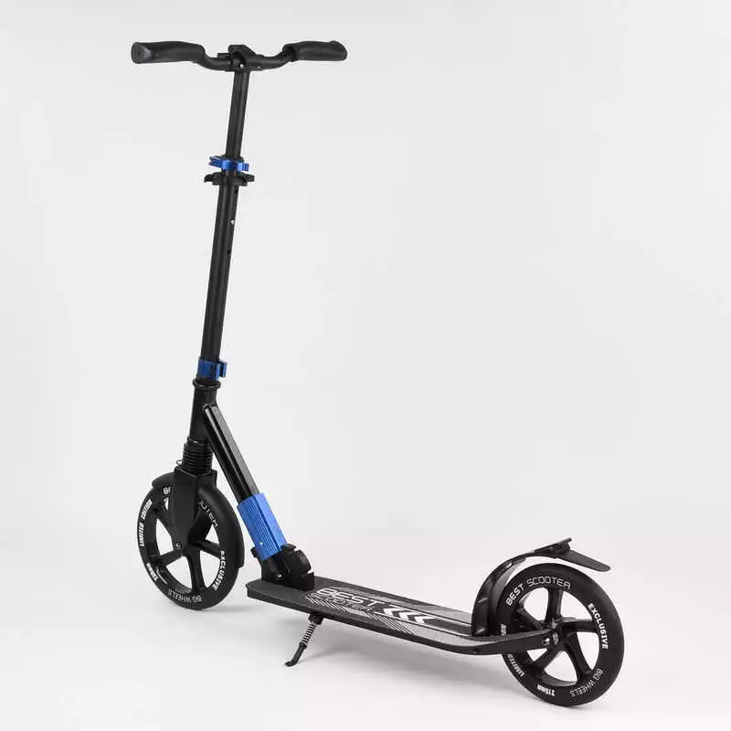 Самокат алюминиевый "Best Scooter" 75186 (2) колеса PU, d переднего колеса - 230мм, d заднего колеса - 215мм, 1 амортизатор передний, в коробке