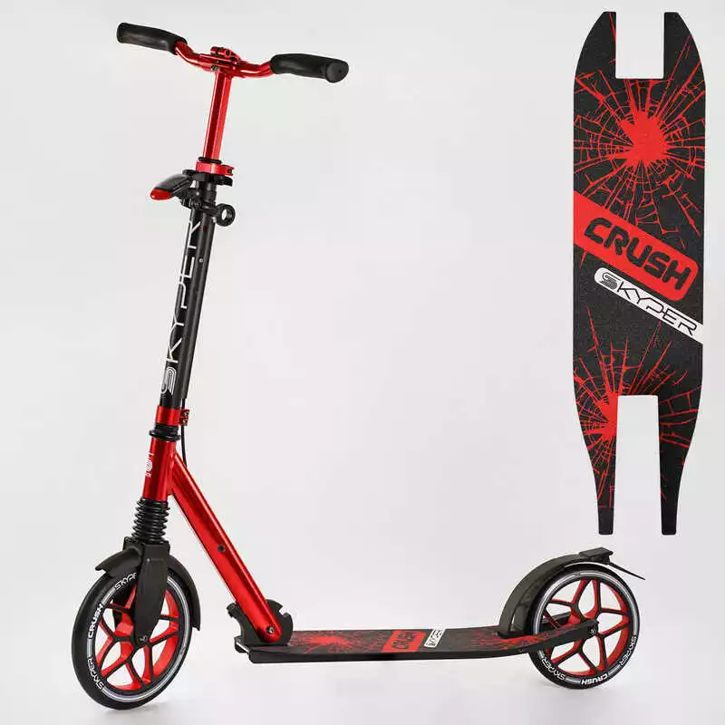 Самокат алюминиевый "Skyper Crush" 95692 (2) колеса PU, ФАРА, зажим руля, d передних колес - 230мм, d задних колес 200мм, 1 амортизатор передний
