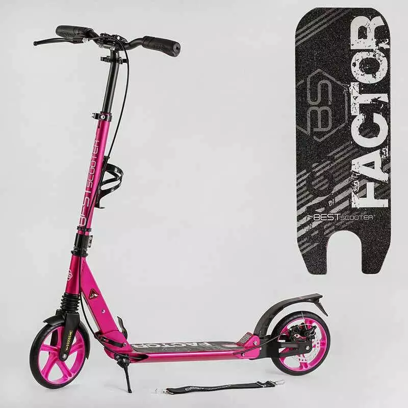 Самокат алюмінієвий Best Scooter BS-45011 (4) "Factor", ручне дискове гальмо, діаметр PU коліс - 200мм, 2 амортизатори, підстаканник, в коробці