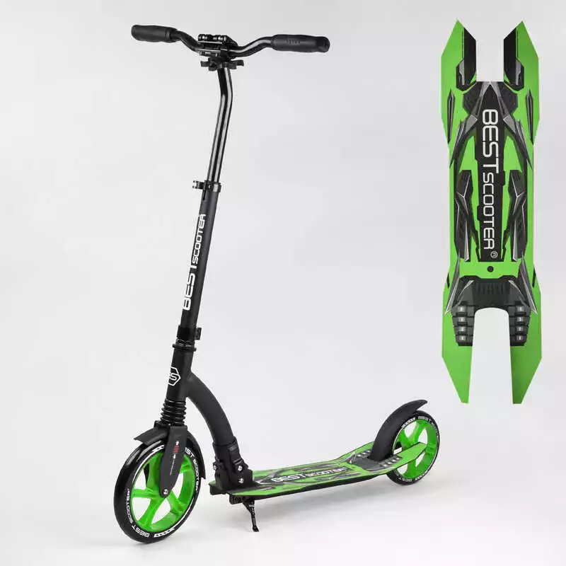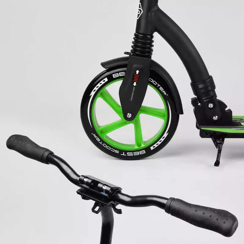 Самокат двухколесный Best Scooter 52266 (4) колеса PU - переднее 23 см, заднее - 20 см, 1 амортизатор, широкий руль, зажим руля, в коробке