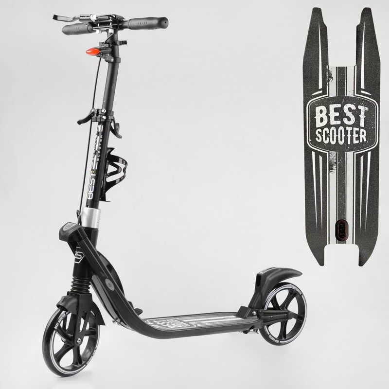 Самокат двоколісний ""Best Scooter"" L-36375 (2) ФАРА, колеса PU 200мм, 2 амортизатори, затискач керма, ручне гальмо, в коробці