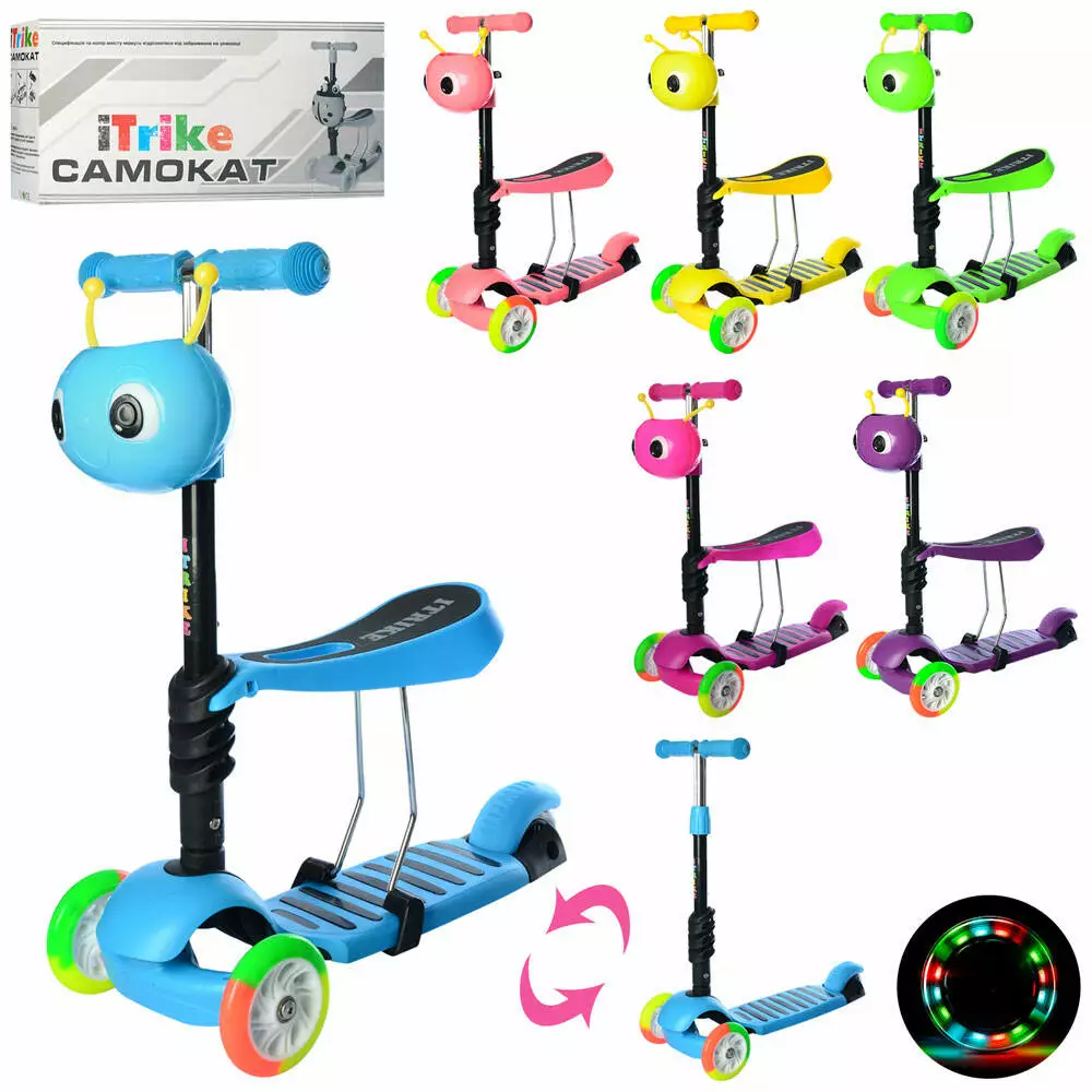 Фотография 1 товарной позиции интернет-магазина детских игрушек www.smarttoys.com.ua Самокат JR 3-054-N MAXI, 3в1(біговел),колеса 3шт.ПУ,2 пер.118мм,кермо,підніжка,кошик,6 кольорів,кор.