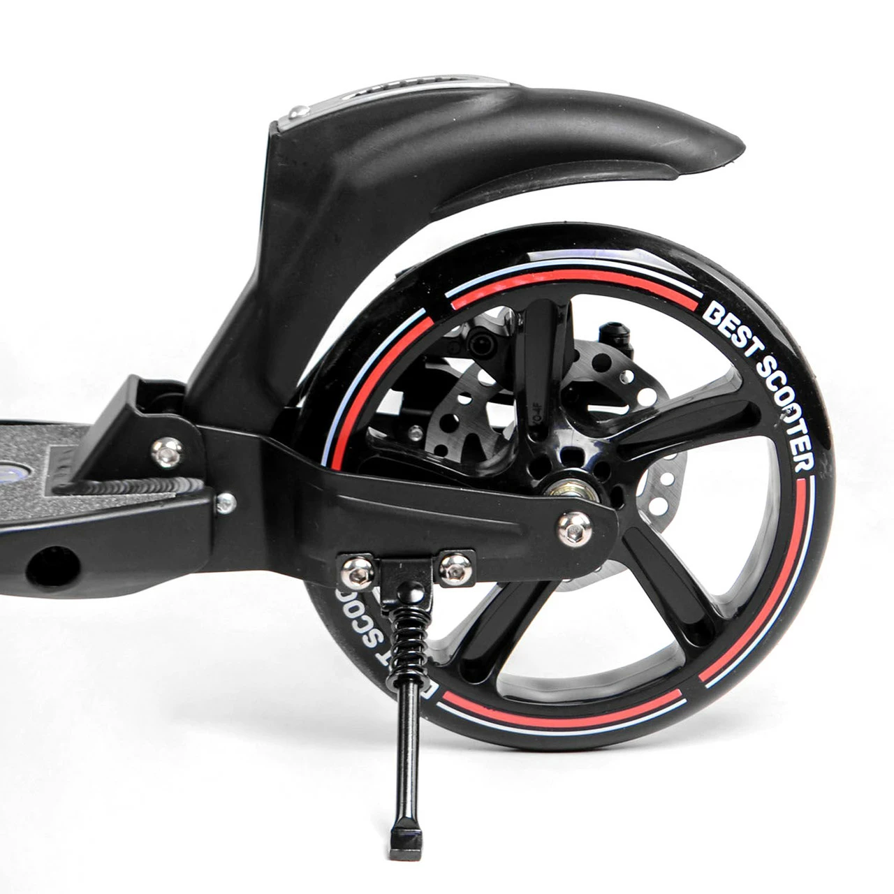 Двухколесный самокат от Scooter с дисковым тормозом - станет отличным подарком, как взрослому, так и ребенку! Модель имеет металлическую прочную основу с двумя амортизационными блоками. Два больших колеса диаметром 230 мм и 200 мм, изготовлены из полиуретана и отличаются повышенной износоустойчивостью. Торможение самоката производится двумя способами: тормозной рукояткой на руле, которая сжимает колодки дискового тормоза на заднем колесе, или же ножным нажатием на крыло заднего колеса. Руль регулируется в 3х положениях, благодаря этому Вы с легкостью подберете комфортную высоту для себя или ребенка. Также на руле установлен специальный зажим, который крепко фиксирует ручки и убирает дребезжание. Мягкие резиновые грипсы обеспечат невероятно комфортное и уверенное управление, так как руки ребенка не соскользнут с основания. Самокат имеет удобную систему складывания, его удобно хранить и транспортировать. Достаточно нажать ногой на педаль у основания руля и сложить самокат до щелчка. Особенности модели: